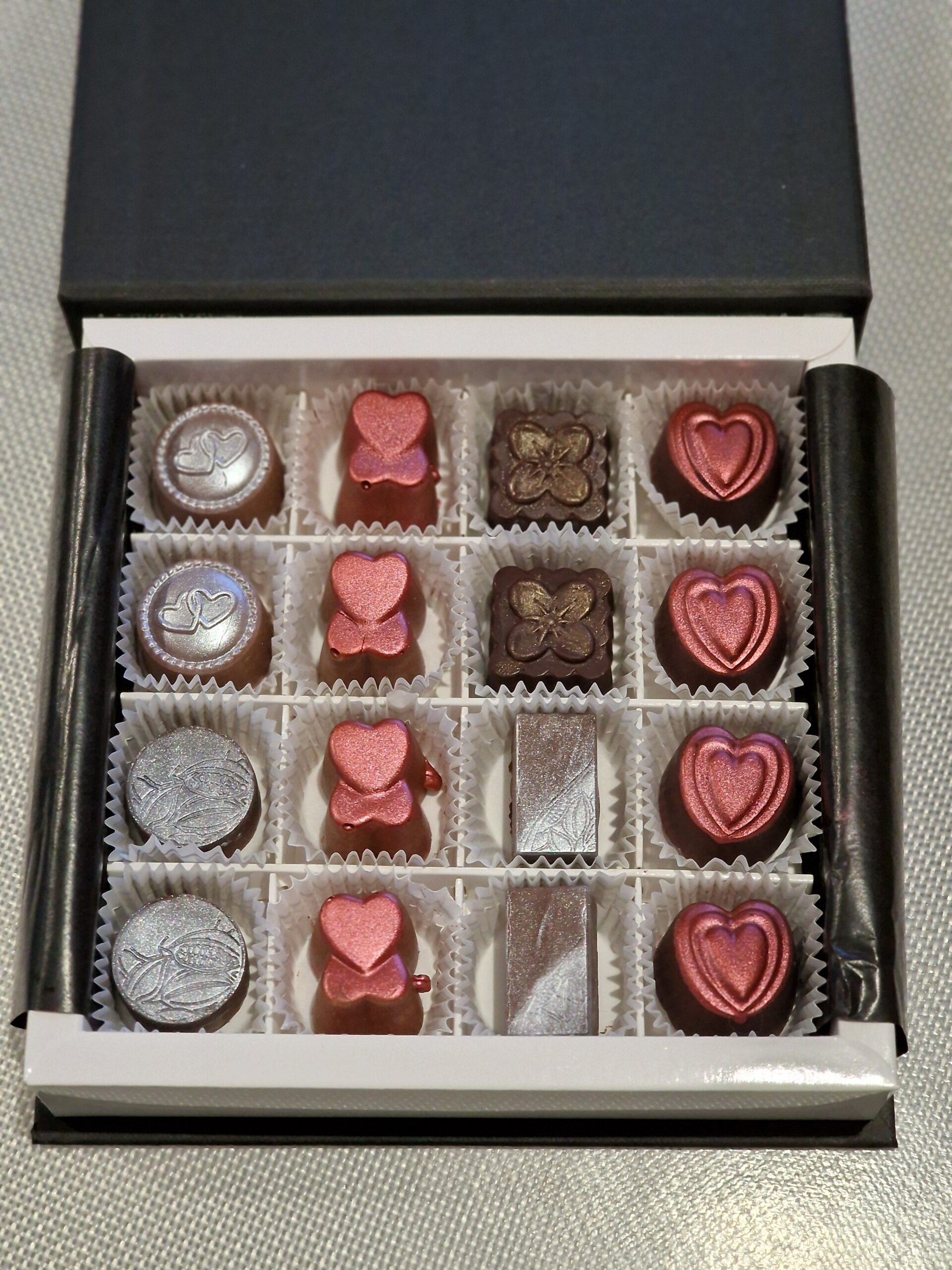 Hõbedased 16 kommiga assortii.